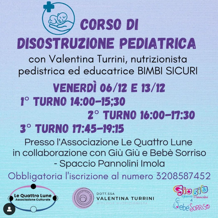 Grazie alla collaborazione con Valentina Turrini @abicibo nutrizionista pediatrica ed educatrice BIMBI SICURI di @salvamento.academy , @le_quattro_lune , @osterica_del_cuore sono state organizzate due nuove date da ben 3 turni ciascuno per il corso di Disostruzione Pediatrica: