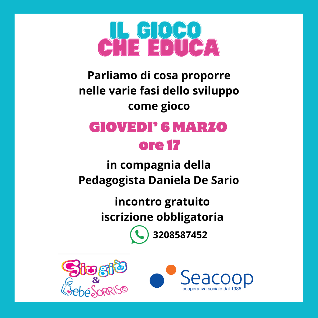 Parliamo di cosa proporre nelle varie fasi dello sviluppo come gioco con la Pedagogista Daniela De Sario DI Seacoop
